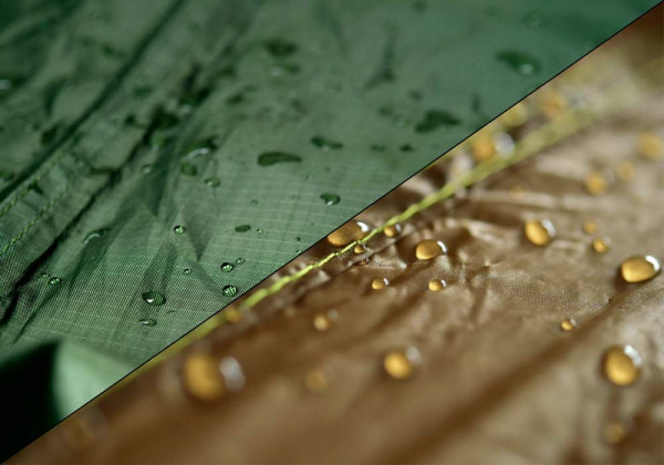 *Silnylon is extremely smooth. The beading effect is a big advantage, and there is much less water pressure because the water flows off better. Weather protection is thus also ensured even in heavy rain, provided that the tarp has a sufficient gradient so that no large water pockets form.