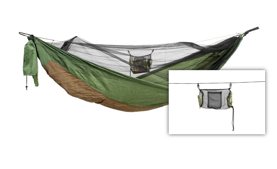 The Amazonas organizer for ultralight outdoor hammocks with mosquito net allows you to store your outdoor equipment, such as torch, knife or even your mobile phone conveniently and within reach inside your hammock.