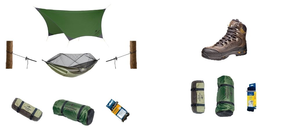 Joey und Otto waren mit einem Boot unterwegs. Viel Gepäck war nicht möglich. Das komplette Schlaf-Setup aus Moskitohängematte und Tarp - Traveller Set wiegt nur rund 1,5 kg (Link).